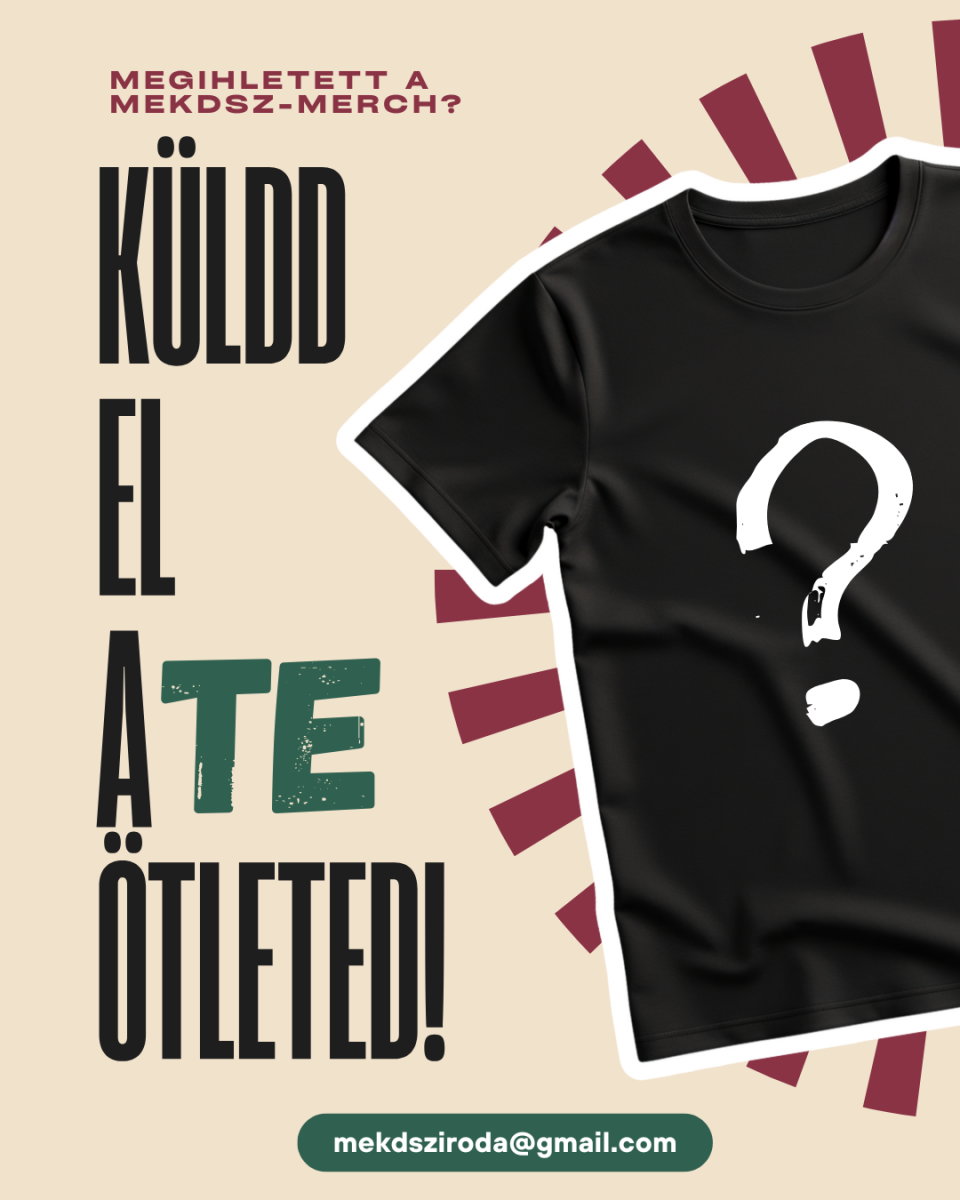 Pályázz a dizájnoddal NOVEMBER 20-ig, küldd el a terveidet a mekdsziroda@gmail.com emailcímre és legyél Te a következő MEKDSZ-merch megálmodója!